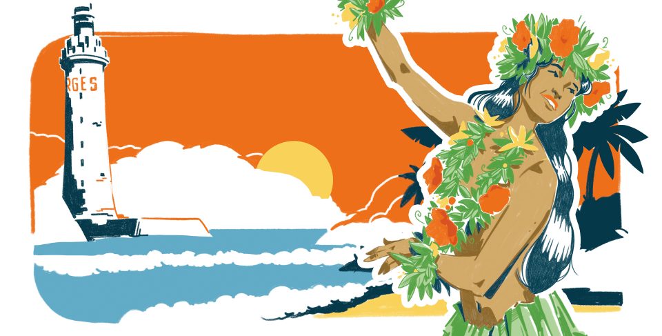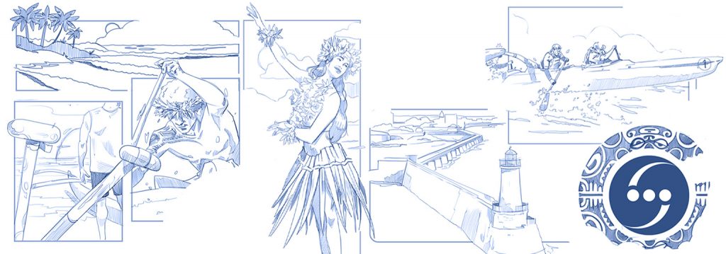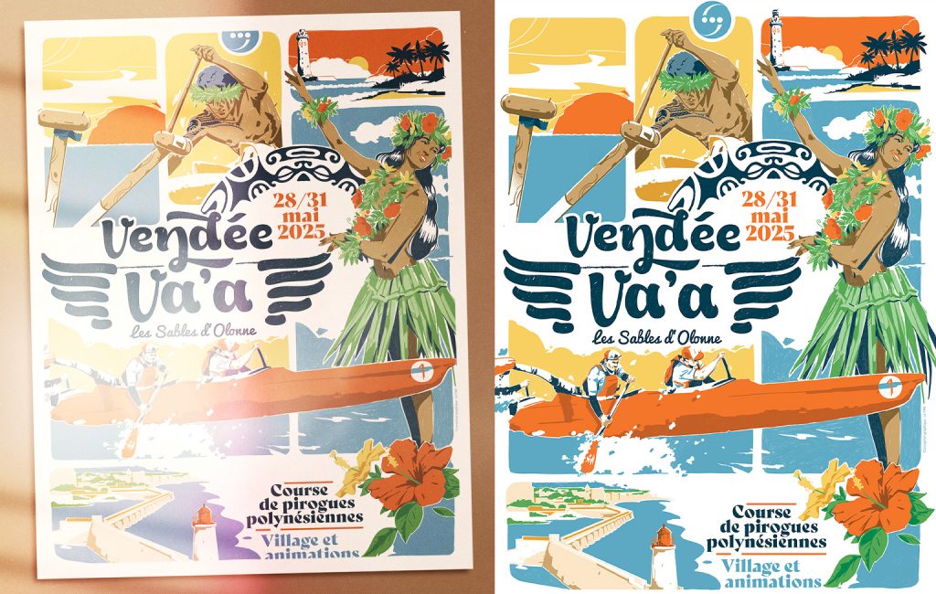 Création de l’affiche officielle pour la course de pirogues polynésiennes Vendée Va’a, événement sportif et culturel unique en France. L’univers graphique s’inspire des affiches vintage de surf et de voyage, mêlant tradition polynésienne, énergie sportive et paysage vendéen.